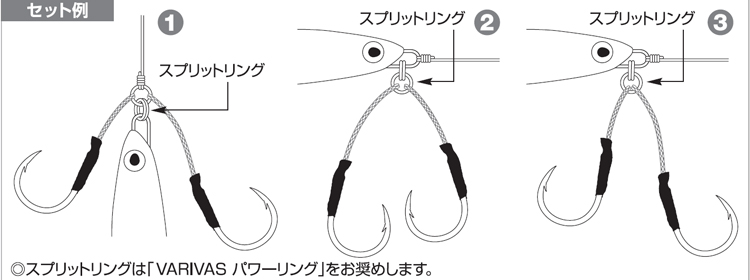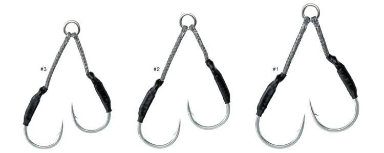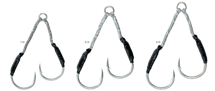 ターゲットはイナダ、ワラサ、カンパチ、ヒラマサ、ブリなど。近海から遠征まで、幅広く対応するアシストフック。相性のよい2つの鈎を組み合わせることで最高のバランスを実現。2つのフックが確実に魚をとらえます。スプリットリングのセッティング方法によって、互いの鈎先を外側にも内側にも向けられます。