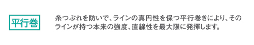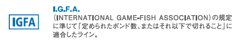 I.G.F.A.クラスという厳しい基準の中で、限りなく規定強度に近い最高の性能を実現したナイロンライン。VA-G製法により、従来のポンドテストナイロンラインと比べ、同強度で1クラス下の細さを実現しています。
