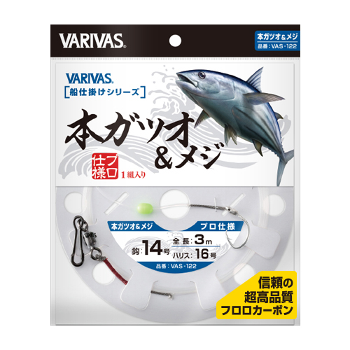 ●ハリスは信頼のVARIVAS高品質フロロカーボン採用。魚の強い引きに十分耐える直線強度と、鋭い歯にも安心の耐摩耗性能を搭載。また、しなやかさも持ち合わせているので、餌を自然に送り込めます。