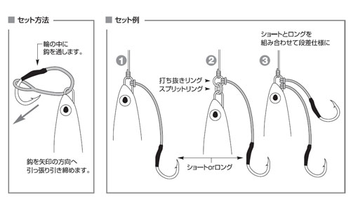 10kgクラスのブリ、ヒラマサや50kgクラスのカンパチ、イソマグロに屈しない、屈強なアシストフック。フックは、石鯛釣りの世界で絶大な支持を得ているグランGP石鯛を採用。強靱なハイパワーカーボンと脅威の鈎先グランポイントがパワーファイトを制す。状況に応じて選べるよう、ショートとロングの2サイズを用意しました。