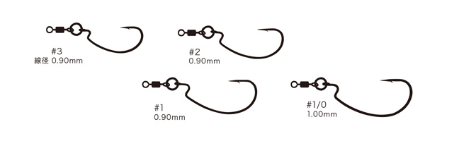 を引きずり出す使い方までと、幅広い目的で使用できるバーサタイルオフセットフックです。装着されたリングによりフックがフリーになるので、ノーシンカーワームなどをよりナチュラルに動かすことが可能。また、スイベルの働きにより、糸ヨレも徹底解消。リングとスイベル自体がシンカーの役割を果たすため、ノーシンカー使用時に素早く沈める効果が期待できます。通常のテキサスリグ使用下においても、リングが装着されていることによりワームがフリーになるため、通常のセッティングにはないナチュラルなアクションを演出できます。別売りの「ゴブリンバット クイックチェンジャー」をリングに装着する「スルーリグ」で使用する際は、すり抜け能力が格段に向上し、糸絡みも激減します。