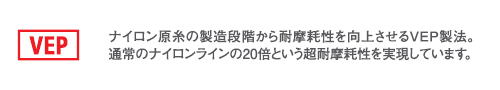 究極のフカセ釣り用ナイロンライン。VEP製法による耐摩耗性能により、イガイなどが多いヘチ、テトラ、岩場の奥まで攻略可能。SP-F加工を施すことで、抜群の水切れとガイド絡みの低減を実現した。朝夕のマズメ時や悪天候時には高い視認性を誇るフラッシュオレンジとフラッシュグリーン、魚の警戒心を解きたい時にはビビッドブルーが好適です。