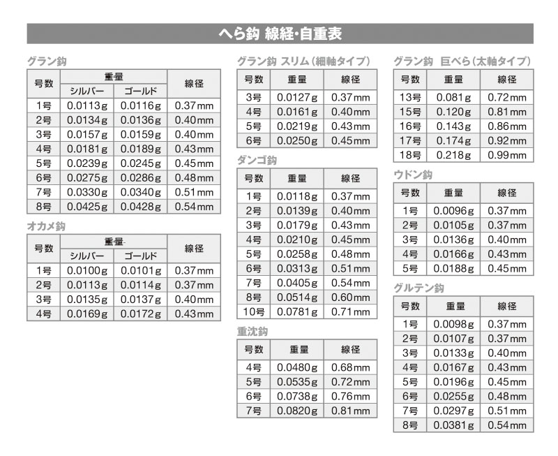 強烈な締め込みに耐える高強度・太軸設計の巨べら専用鈎が完成。人気のグラン鈎のフォルムはそのままに、太軸化によりフトコロが更にしっかりしました。したがって軟らかいエサを大きく確実に付けられるため、巨べらの強いあおりにも負けないエサ持ちの良さを実現。グラン鈎独自の鋭いグランポイントがしっかりとHERAFUNAの口をとらえ、バラシも激減。