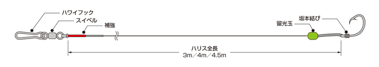●ハリスは信頼のVARIVAS高品質フロロカーボン採用。魚の強い引きに十分耐える直線強度と、鋭い歯にも安心の耐摩耗性能を搭載。また、しなやかさも持ち合わせているので、餌を自然に送り込めます。